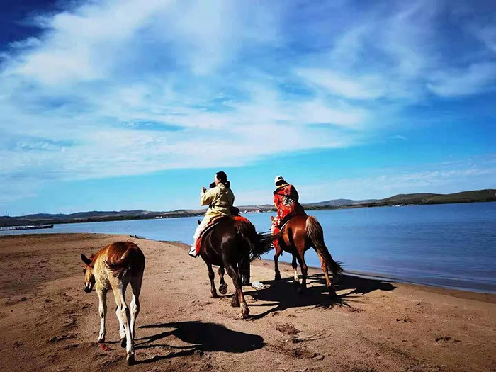 夏天的草原綠草如茵,深呼吸一口,清香的草木味撲鼻而來(lái),讓人心曠神怡、如癡如醉。漫游在草原上,風(fēng)吹草動(dòng),形成了一幅如詩(shī)如畫(huà)的景象,正如北朝民歌“天蒼蒼,野茫茫,風(fēng)吹草低見(jiàn)牛羊”!騎在馬背上,悠哉游哉,仿佛進(jìn)入了世外桃源。