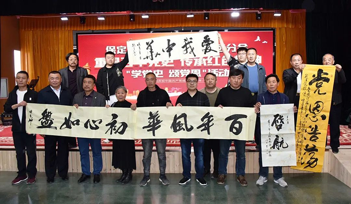 重溫百年黨史,傳承紅色精神!在建黨100周年之際,由保定馨冠食品有限公司主辦,民建保定市滿(mǎn)城支部、保定市京津冀協(xié)同發(fā)展促進(jìn)會(huì )、保定市廣播電視報社、保定市美術(shù)家協(xié)會(huì )滿(mǎn)城區分會(huì )、保定市書(shū)法家協(xié)會(huì )滿(mǎn)城區分會(huì )、保定市攝影家協(xié)會(huì )滿(mǎn)城區分會(huì )協(xié)辦的“講黨史 頌黨恩”?聯(lián)誼活動(dòng),于2021年5月2日,在保定市冠香居食品有限公司3樓“馨冠文化藝術(shù)館”隆重上演。